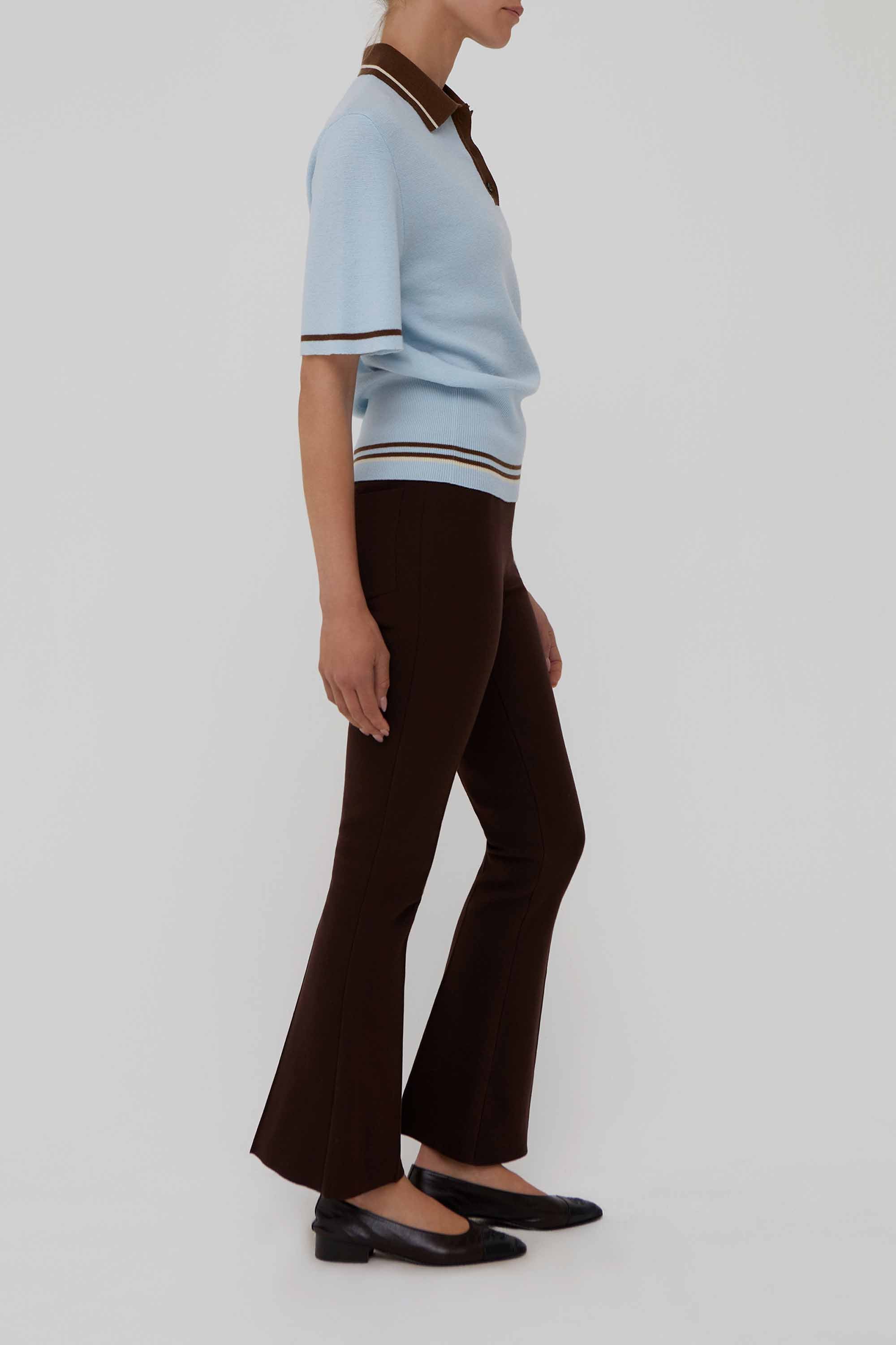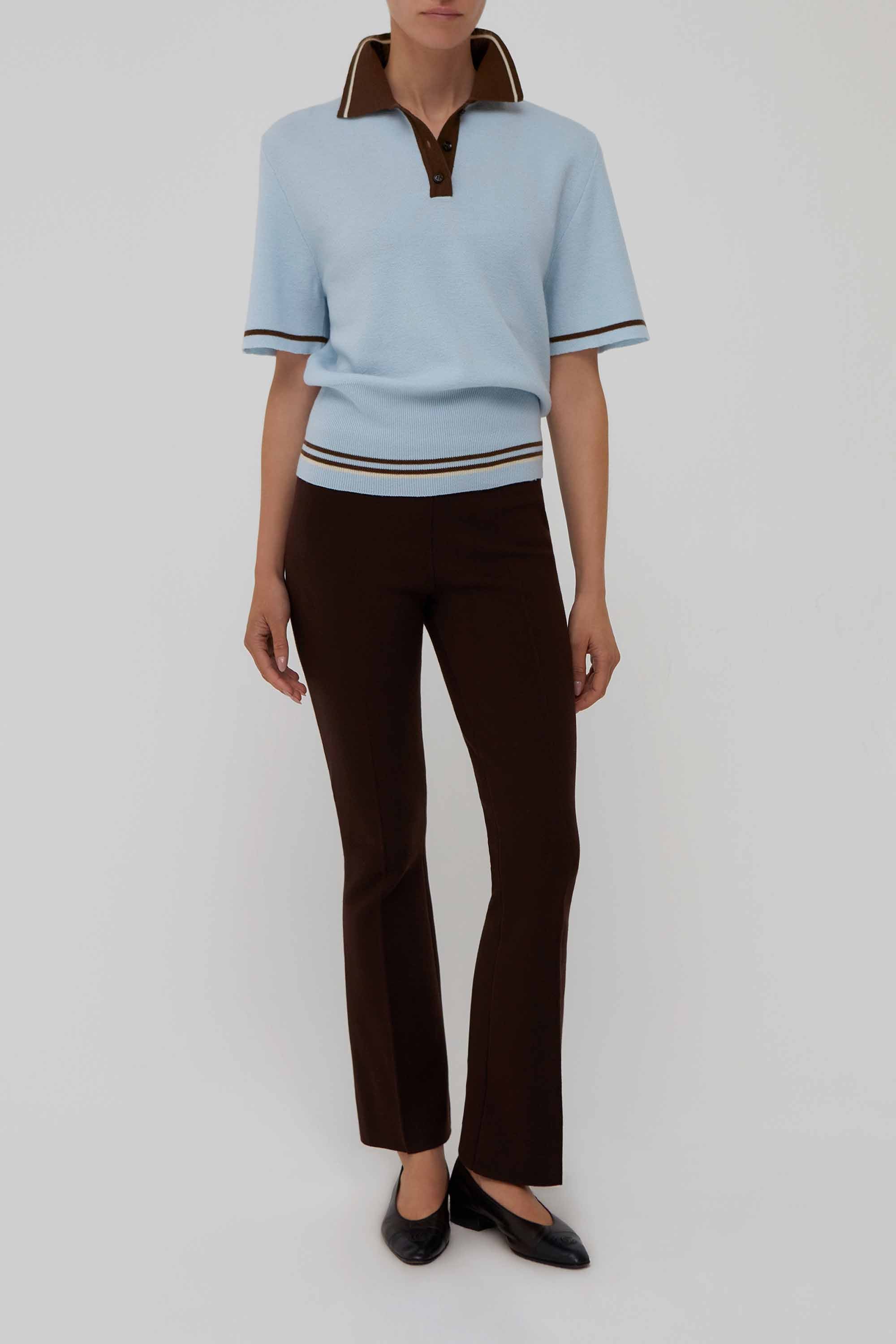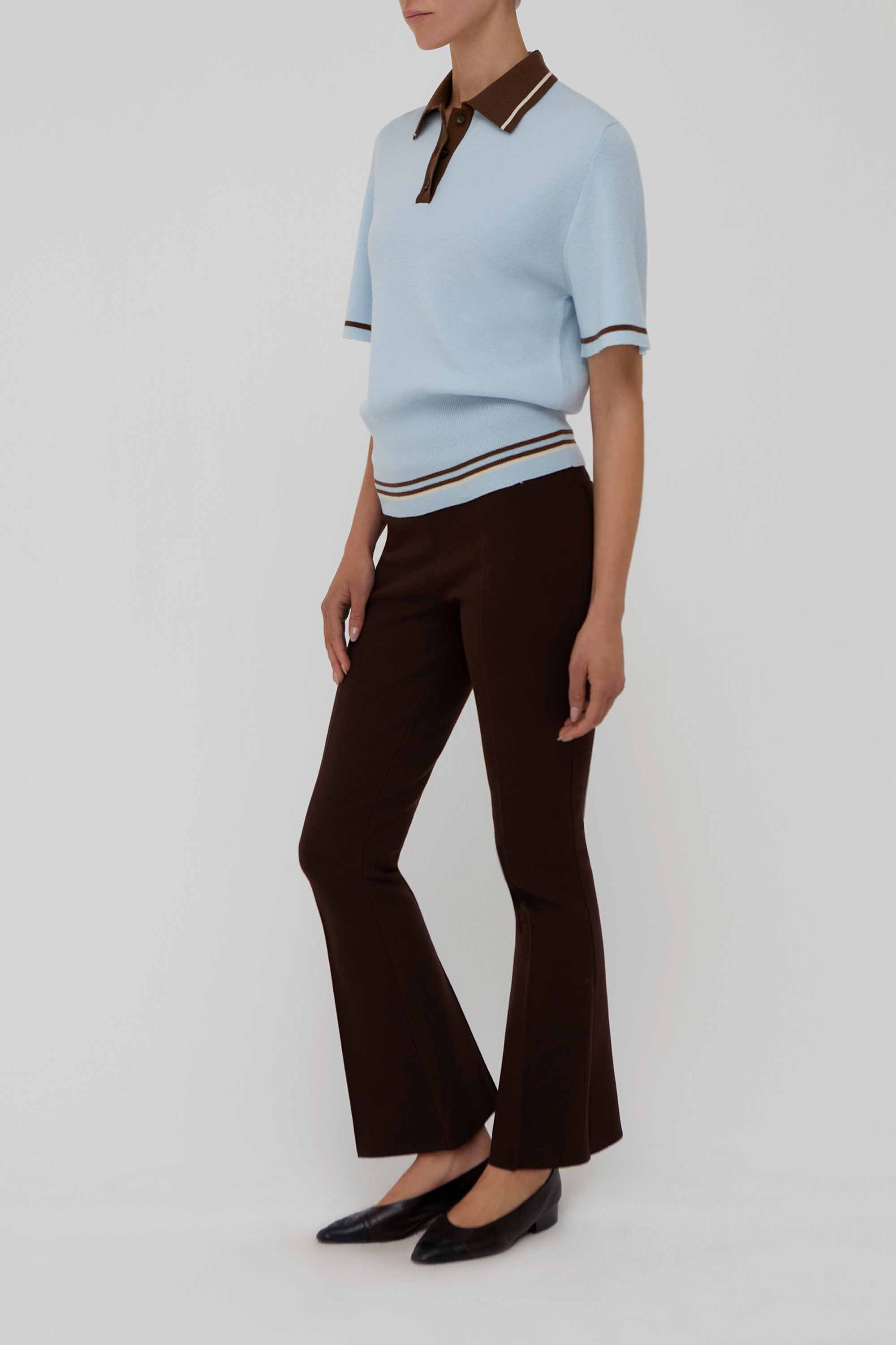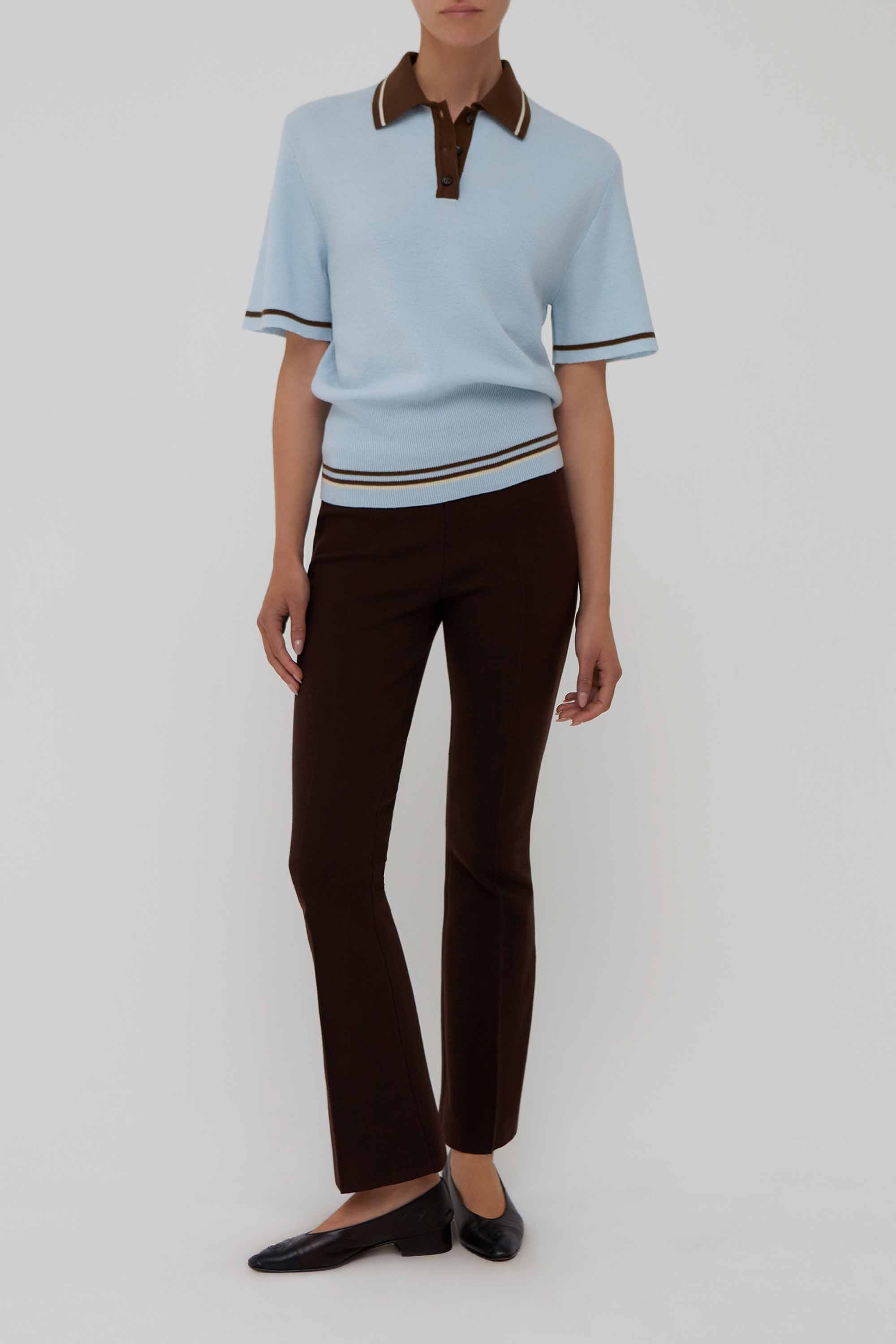 Ivy Colorblock Wool Polo Top in Sky Blue and Brown